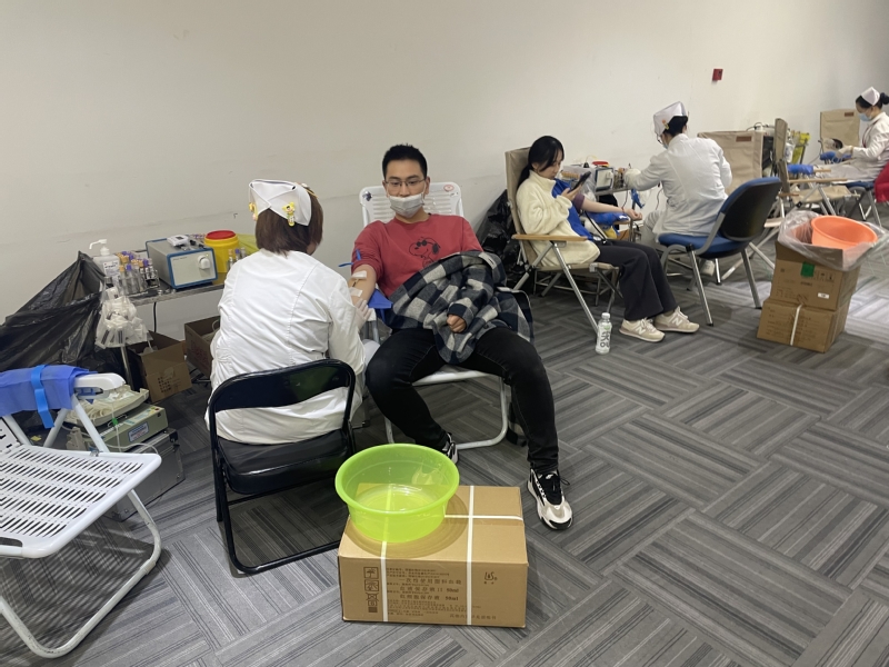 献血当天,天气宜人,春意满园。一大早,工作人员和志愿者们便来到活动现场,忙碌而有序地布置场地、准备慰问物资。场地在早上8点献血活动开始前已经布置得井然有序。为应对可能出现的意外情况,现场还配备了完善的急救措施,确保每位献血者的安全。医生、老师和志愿者们准时到岗,以最好的状态迎接大家的到来。