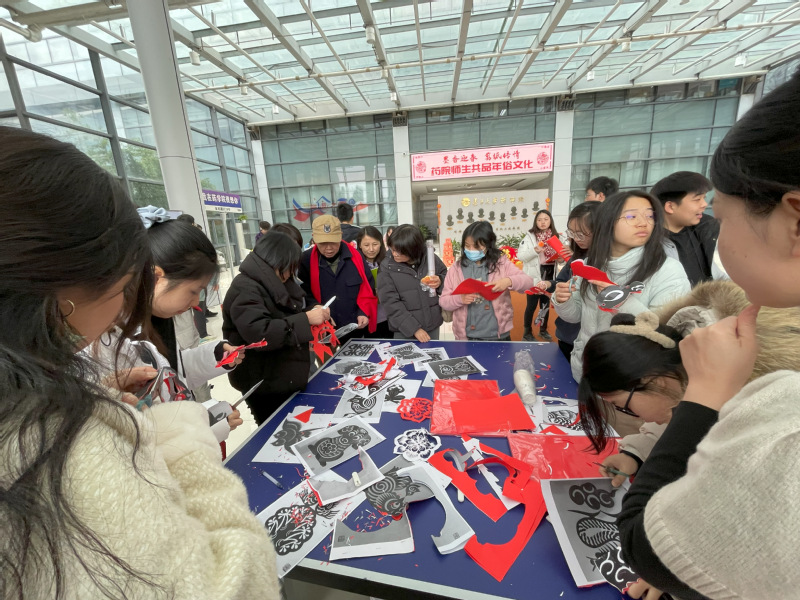 在自由体验的环节,现场热闹非凡。春联现场墨香四溢,气氛温馨热烈。师生们手持毛笔,在红纸上挥洒自如,一副副精美的春联呈现在大家眼前。这些春联充满了师生们的真挚情感,有对未来的美好祝愿,还有对未来科研学习的热切期待,无不传递着温暖和幸福。剪纸的现场,在辛旭光老师的指导下,师生们纷纷拿起剪刀,一刻一剪之间,一幅幅精巧绝伦的剪纸作品便栩栩如生地展现在眼前,无不感叹传统技艺的高超和精妙。