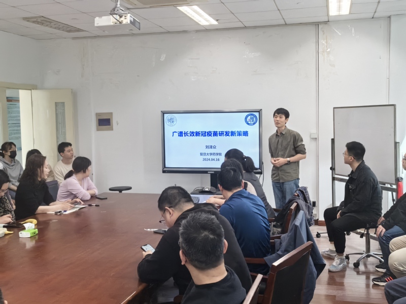 首先,刘泽众老师以《广谱长效新冠疫苗研发新策略》为题,结合自身近年来的研究成果,为大家梳理了冠状病毒的进化史,并详细阐述了自新型冠状病毒Covid-19爆发以来,新冠病毒的突变情况。刘老师以对新冠病毒疫苗的优缺点分析为引子,用自己的思考过程为例,生动形象的向各位同志讲述了如何发现创新点,以及如何开展研究,为大家介绍了自己针对新型STING激动剂佐剂、冠状病毒中和抗体的中和表位研究等一系列内容。精彩的报告引来支部同志们的一致称赞。