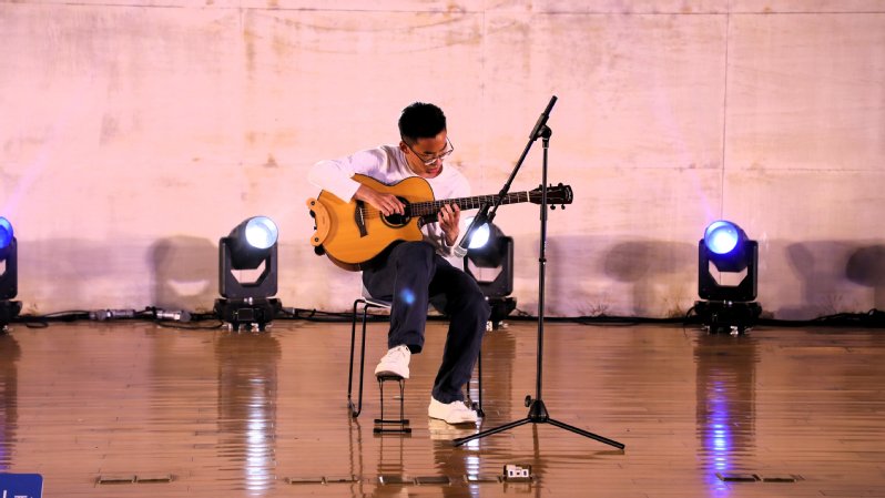 实力派Ph.D舞团带来的舞蹈串烧充满活力,带领大家一起感受着青春的跃动与不羁。桃李不言,下自成蹊,四年大学生活中太多需要感谢的人和事。刘宇杰同学用一首动人的《谢谢》,带着不舍告别了四年校园生活里的美好时光;学院老师们的国风秀《赏国风之韵,赴五月之约》用优雅的步伐带着大家领略了东方美学的独特魅力;古典到现代,从静谧到激昂,蒋先翰带来的经典吉他指弹《wings~you are the hero》,用轻快灵动的吉他旋律带领观众开启了一场追寻英雄梦的飞行之旅。