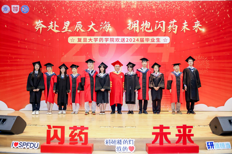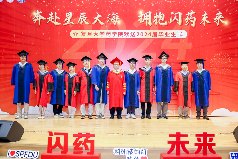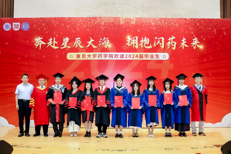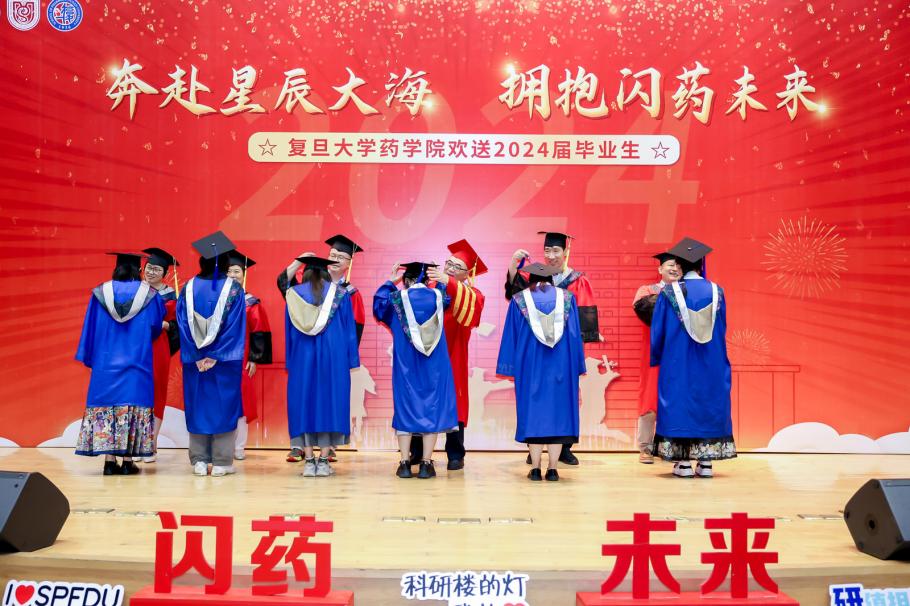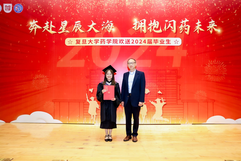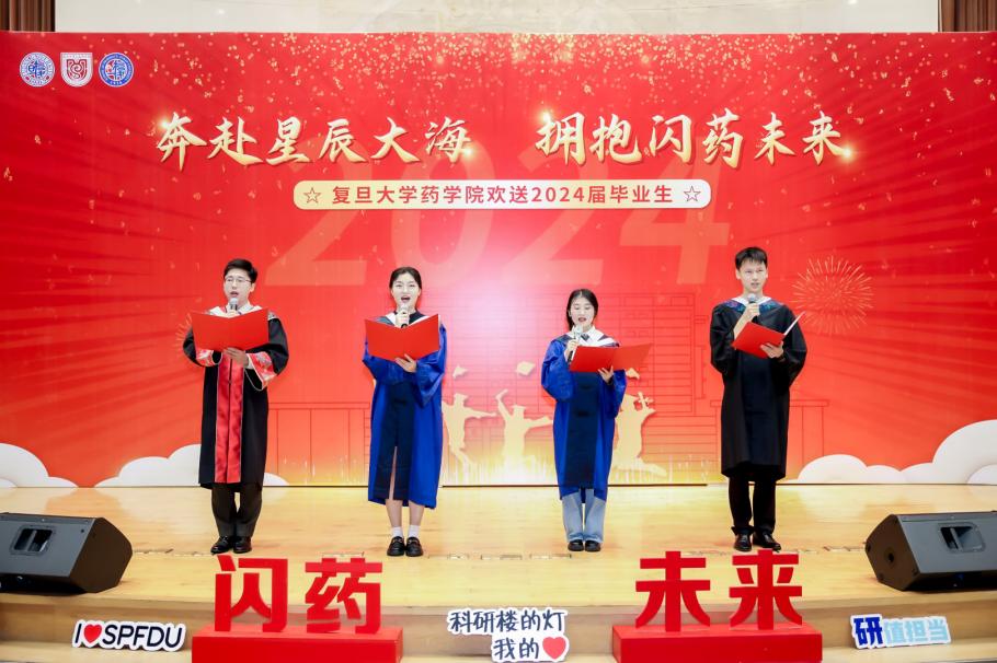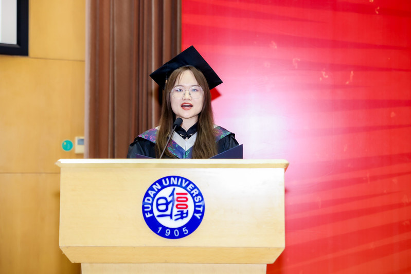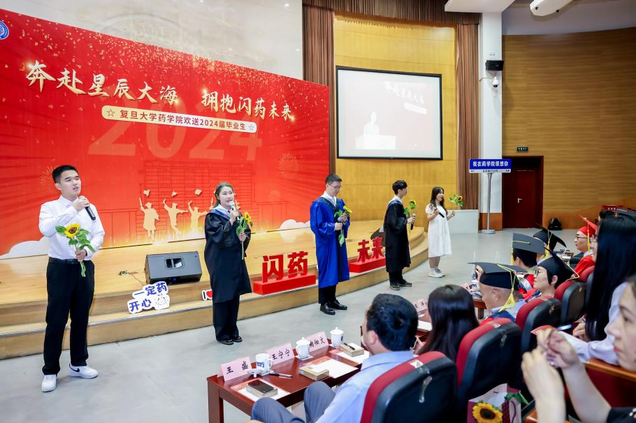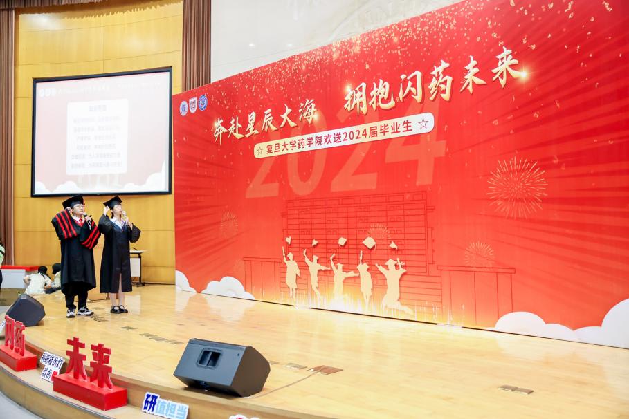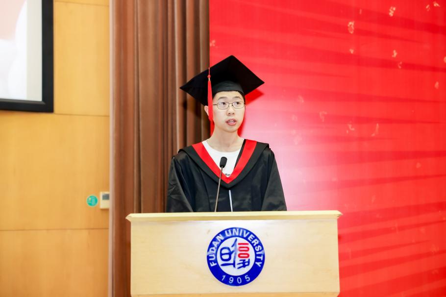 2024届本科毕业生徐乐晴、2024届博士毕业生金子义作为优秀毕业生代表依次发言。徐乐晴将在学校的经历总结为“见证”“探索”“赓续”。药院学子们与张江一起蜕变和成长,在学院和学校的支持下,同学们能够拓展自我,成为一个卓越而有趣的复旦人。最后,她祝愿同学们毕业快乐、前路浩荡,为国家医药健康事业贡献一份自己的力量。