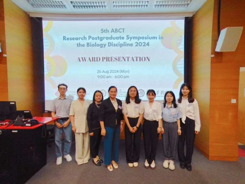 8月26日,同学们参加了香港理工大学应用生物及化学科技学系与h漫 合办的5th ABCT Research Postgraduate Symposium in the Biology Discipline 2024并进行汇报。在当天上午的海报报告环节,李启秀、梅妮、王鹏威同学与香港多所高校的老师和优秀研究生开展学术交流,就感兴趣的课题进行深入探讨。下午口头报告环节,邓燕、胡学涛、李适佚、尹航等同学分别贡献了精彩的汇报,受到香港理工大学师生的认可与赞扬。其中,21级博士生李适佚题为“An Erythrocyte Membrane-fused Plant-derived Nanoparticles as a Gene Therapy Vehicle for the Treatment of CI/R Injury”的汇报被评为优秀口头报告(BEST ORAL PRESENTATION)。颁奖仪式上,茅以诚老师代表h漫 感谢香港理工大学的盛情邀请与接待,两校教师都热情地表达了后续进一步交流合作的意愿。