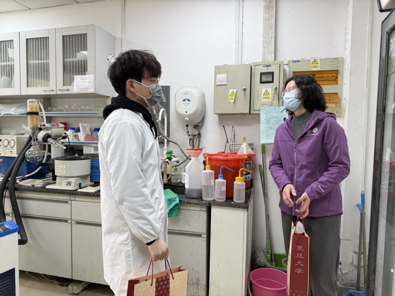 为关心关爱寒假留校学生,营造温暖和谐的校园氛围,1月22日,h漫 党委书记王建新,院长李聪,副院长潘俊、戚建平、周璐,党委副书记史雪茹、王盛一行,先后走访了学院科研楼、化学南楼、化学北楼,慰问关心寒假留校学子,每到一处,老师们都同学们亲切交谈,为同学们送去温暖与祝福。