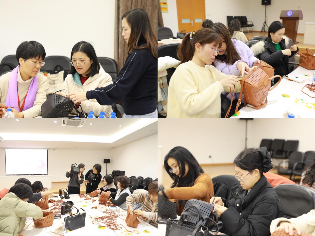 经过两个多小时的努力,一个个编织包在老师们的巧手下诞生了。看着自己亲手制作的成品,大家脸上都洋溢着兴奋和喜悦的笑容。这些编织包不仅美观实用,更是女教职工们创意的结晶。
