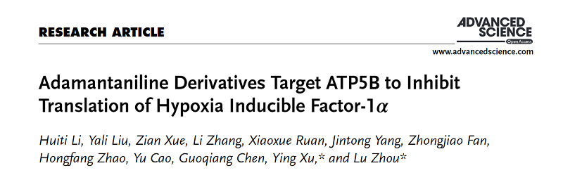 近日,h漫 周璐教授课题组发现了一种调控HIF-1α转录活性的新机制,相关工作以“Adamantaniline Derivatives Target ATP5B to Inhibit Translation of Hypoxia Inducible Factor-1α”为题在线发表于《先进科学》(Advanced Science)杂志。