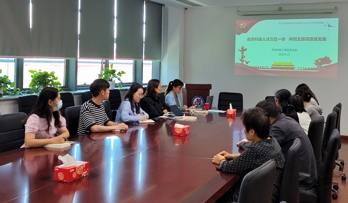 首先,由支部书记洪兰老师作 “教育科技人才三位一体 共同支撑高质量发展”的专题党课报告,围绕《习近平新时代中国特色社会主义思想专题摘编》和党的二十大报告中关于教育、科技、人才工作的重要论述,从“教育是国之大计,党之大计”“完善科技创新体系”“实施创新驱动发展战略,实现高水平科技自立自强”“实施人才强国战略”四个方面带领大家学原文、悟原理,使大家充分认识到新时代实施科教兴国战略、强化现代化建设人才支撑的重大战略意义,深刻理解了教育、科技、人才在全面建设社会主义现代化国家中的地位与作用。
