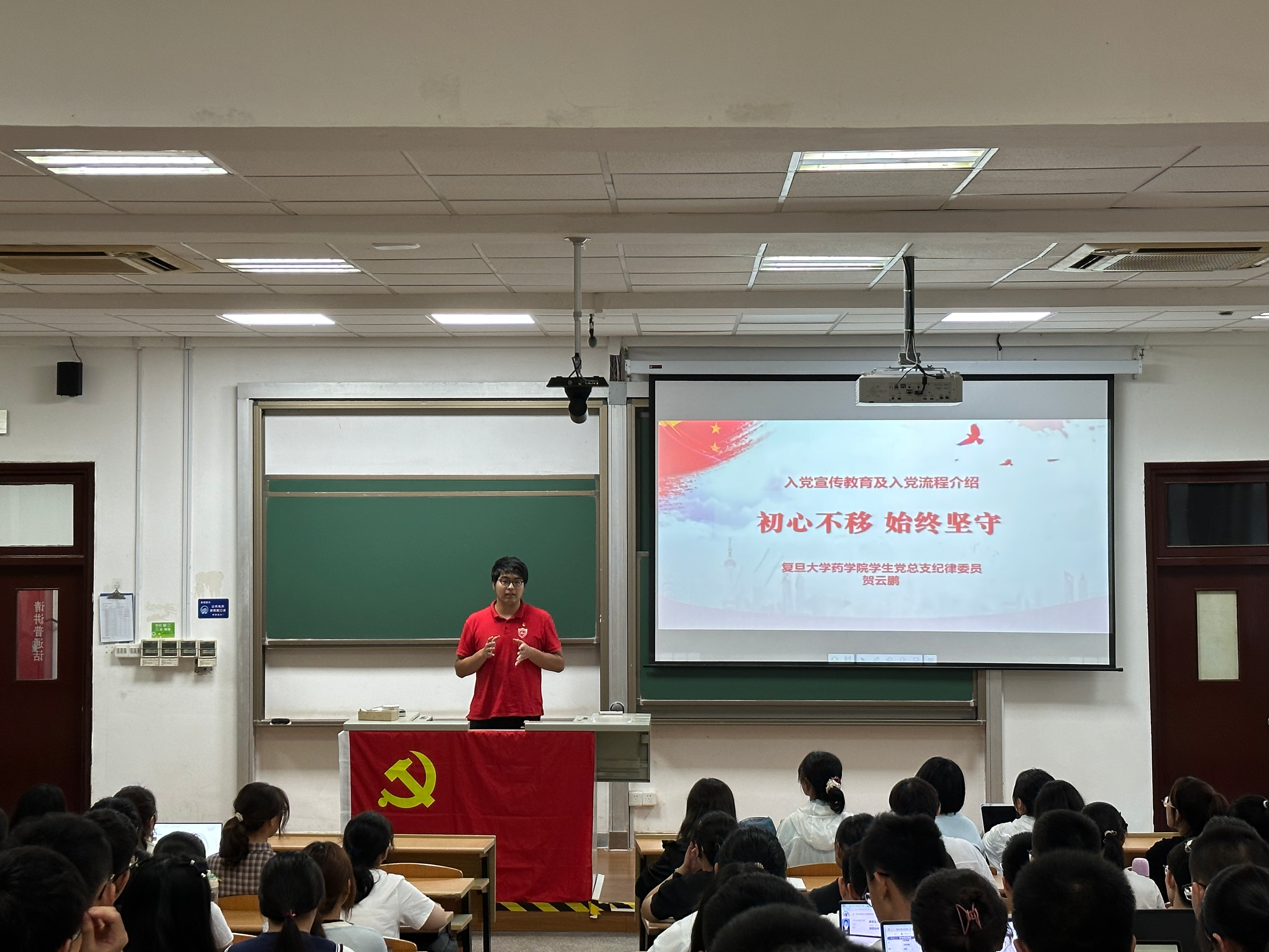 短短两小时的教育课让我受益匪浅,对党的向往油然而生,作为新时代的复旦药学人,我更应练成过硬本领,不断向党组织靠拢,让青春在党旗下闪耀!