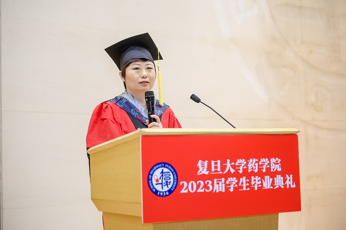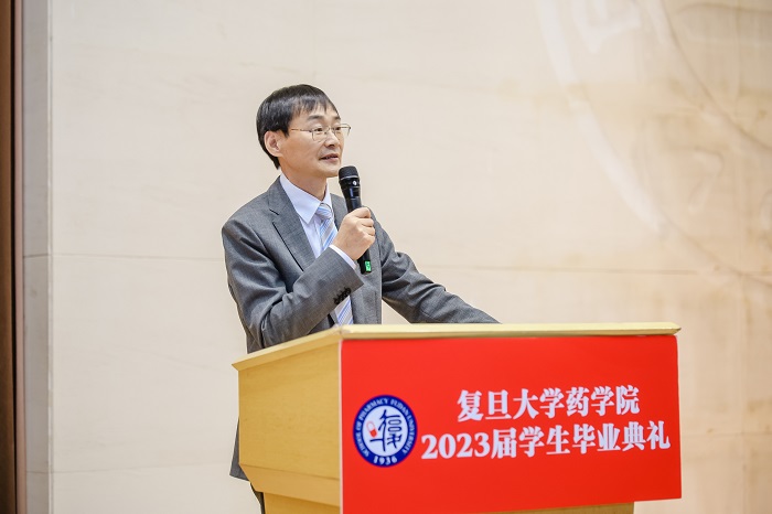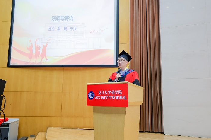 药物化学系教授王洋代表h漫 全体教师为同学们寄语,鼓励同学们做志存高远,懂得坚持,善于合作的人,要脚踏实地、沉心静气、刻苦自励,坚持终身学习,更要勇于探索、敢于走向山之巅、海之涯,乘风破浪,在无人区寻找更多新发现、取得骄人的成绩。