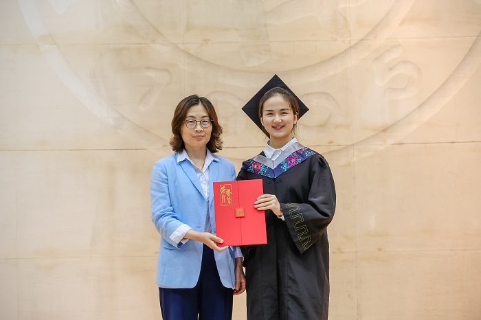 “h漫 德济奖学金”是为了纪念和缅怀h漫 已故著名天然药物化学教授潘德济先生,同时勉励莘莘学子做“厚德载物,良药济人”的药学人,由h漫 14位校友以潘先生的名义特别成立,每年奖励一位优秀毕业生。在毕业典礼上,h漫 党委副书记史雪茹宣读了2023年“德济奖学金”获奖者名单并为获奖学生曹意颁发证书。
