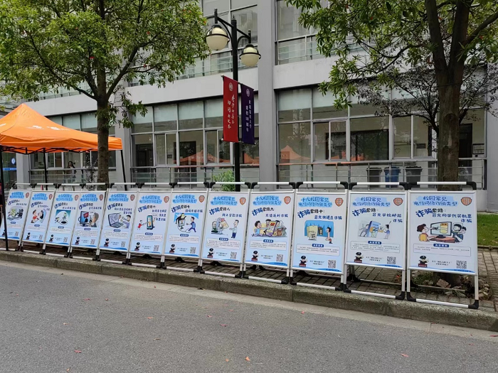 除固定摊位外,此次游园会还设有“歌舞燃夏”小舞台,来自Demo合唱团的成员在每个半点倾情献唱《奇妙能力歌》《喜欢你》《年少有为》《盛夏》等歌曲,现场参与毕业游园的同学也积极报名歌曲演唱,为师生们呈现了一场听觉盛宴。六个“承旧他意”跳蚤市场摊位前人头攒动,摊主们独家收藏的布偶、学霸笔记、笔记本、书本等吸引了一波又一波师生驻足选购。浦东新区高校所设摊反诈骗宣传,用一个个身边的实际案例为师生们敲响警钟。