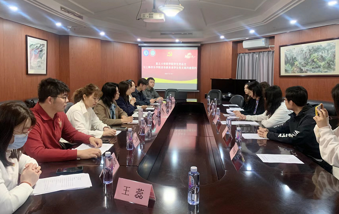 随后,双方党支部的党员结合党的二十大报告及习近平总书记关于青年工作重要论述进行联组学习。在主题发言环节中,h漫 2022级硕士研究生贺云鹏同志从理论宣讲出发,结合自身“星火”党员志愿服务队和上医院史馆讲解员的经历,谈如何做好理论宣讲人,把党的理论讲好、讲活;h漫 2021级博士研究生孟娜娜同志从学术科研角度出发,基于对药学专业的深入了解,分享药物研究心得体会,感悟做科研谈创新的意义;上海音乐学院音教系2020级硕士研究生陈玉倩同志从学术专业出发,谈中华传统文化的保护和传承,如何对传统音乐教育做创造性转化、创新性发展;上海音乐学院音教系2022级硕士研究生李逸飞同志聚焦《论党的青年工作》中有关教育的内容论述,结合青少年发展规律,分享音乐教育的相关特点及作用。在自由交流环节,王宁宁老师和虞文嫣老师就音教系本科和研究生教学模式等话题与音教系师生进行了讨论,并探讨了未来共建合作的方式等工作内容。最后,双方党支部党员一行参观上海音乐学院校史馆。