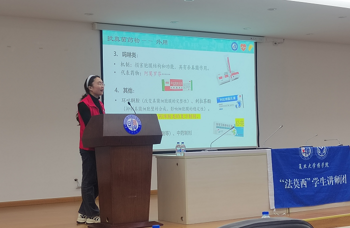2023年4月27日下午,h漫 “法莫西”学生讲师团面向张江校区后勤保障人员开展日常药物合理使用科普讲座。逾50位物业管理人员、食堂服务人员、安保队员等参与。