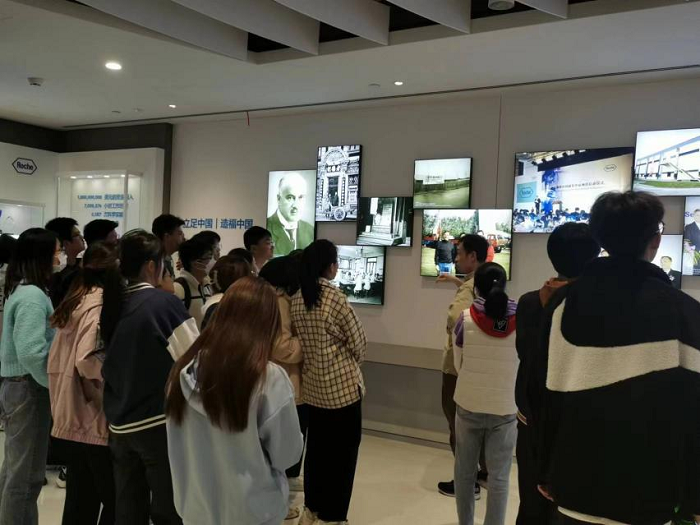 茶歇过后罗氏创新中心的科学家校友为大家介绍了罗氏研发的整体情况、聚焦领域以及目前最新的研究进展,并以学长的身份激励同学们在药学行业深耕,成为行业内的领军人才。随后,同学们依次参观了早期研发的药化实验室和生物化学实验室,近距离感受罗氏的新药孵化器。实验室整洁有序的环境、新颖独特的通风设计以及透明门窗设计背后的便捷性意义都加深了学生对罗氏制药的向往。最后,同学们还参观了罗氏的历史墙,在一张张照片中体验罗氏的h漫和发展愿景。