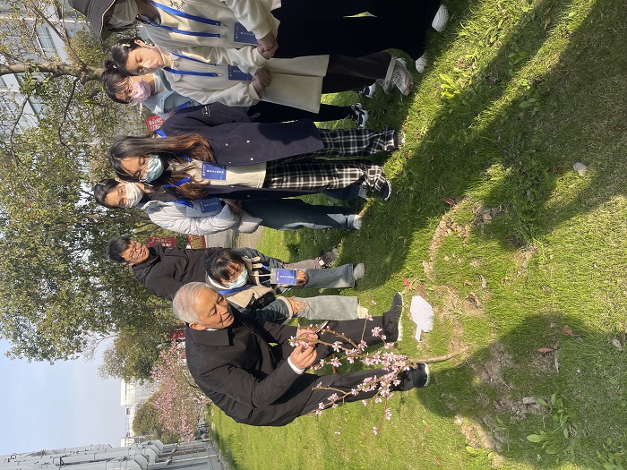 首先,蒋新国老师向大家介绍了“桃李路”落成的初衷。他提到了六十年代在果园工作的故事和感悟,而桃李作为我国传统文化中的重要象征,代表着生机盎然、蓬勃向上的青春年华,也是美好品格、亲切家园的代名词。在实验教学中心前种下桃树,更是寄托着老师对同学们的殷殷期望。