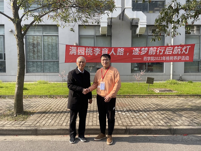 2023年3月27日下午,由h漫 学生党总支组织的“满园桃李育人路 逐梦前行启航灯”桃树养护活动在实验教学中心前顺利举办。本次活动邀请了h漫 药剂学系教授蒋新国老师、陆伟跃老师,天然药物学系穆青老师等各系老师,同时莅临现场的还有h漫 党政领导和桃李青年服务队的志愿者们。