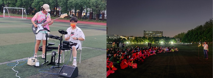 10月3日晚上六点,h漫 在张江校区操场举办了“爱国荣光,乐动张江”草坪音乐会活动。本次音乐会由h漫 Demo合唱团组织策划,各院系同学积极报名准备了近30首精彩的曲目,傍晚时分大家戴着口罩在草坪席地而坐、共同欣赏。不同类型的歌曲或欢快活泼,或安静诉说,带领大家沉浸在音乐的世界里。现场气氛高涨融洽,伴随歌声,不时传出现场观众的应援和合唱。最后,全场一起合唱了《国家》,将现场的氛围点燃到了最高点,草坪音乐会激发了同学们爱国热情和凝聚力、向心力,进一步增强新时代学子的理想信念。