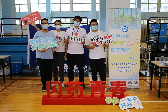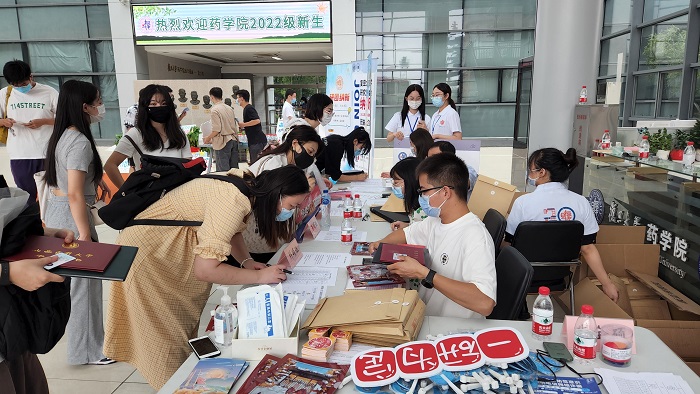 为了帮助新生顺利到校、尽快融入校园生活,h漫 在学院党委、校学研工部和医学学工部的指导下,提前部署、精心安排、紧密合作,为新生报到做好充分准备。报到前夕,学院为每位新生精心准备了“迎新大礼包”,包括h漫 学生发展手册,以及培养方案、学籍管理规定、校历、校徽等物资,助力学生适应校园生活,遵守校园防疫要求,健康快乐开启新学期。学生党总支组织了一支由31位学生党员、入党积极分子组成的志愿服务队。志愿者们克服跨校区、时间紧、场地有限的困难,承担了学院新生物资的领取、分装工作,并在报到当天协助辅导员完成新生引导、查验证件、行李搬运等工作,不仅为迎新工作顺利开展保驾护航,也让学院的新生“小药丸”们倍感贴心与温暖。此外,学院职能办公室和学生组织还精心设计了宣传标语、横幅海报、易拉宝、药学创意合影板等系列迎新物品,让新生感受到独具药学特色的文化氛围与温馨亲切、清新活泼的校园文化气息。