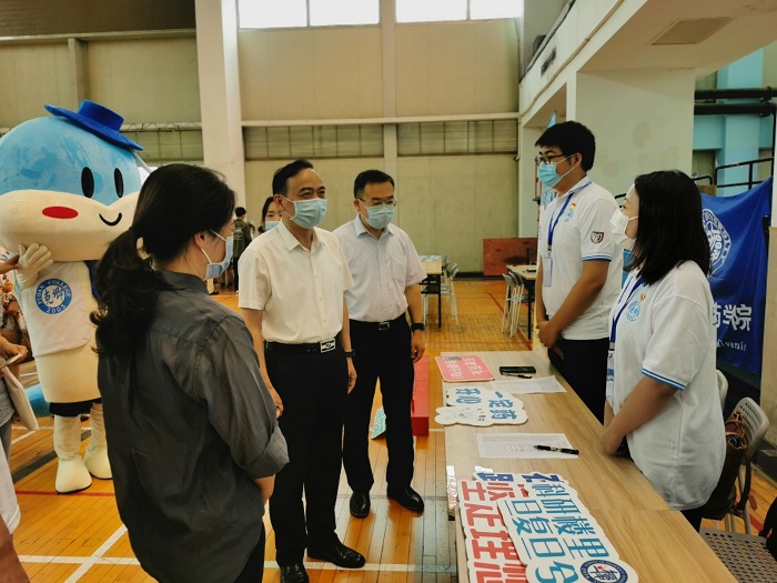 8月28日,h漫 2022级本科新生在邯郸校区进行报到。辅导员与志愿者一早就在北区体育馆布置好了新摊位,同时提前将报到流程在班级群告知新生,现场报到时,细致周到,发放校园一卡通和书院服,完成报到登记。h漫 党委副书记、上海医学院党委书记袁正宏,上海医学院党委副书记、副院长徐军,上海医学院党委学生工作部部长包涵等领导也来到了迎新现场,慰问迎新志愿者、新生辅导员,与同学们亲切交谈,合影留念,并走进新生寝室看望新生,鼓励其自立自强、努力学习。