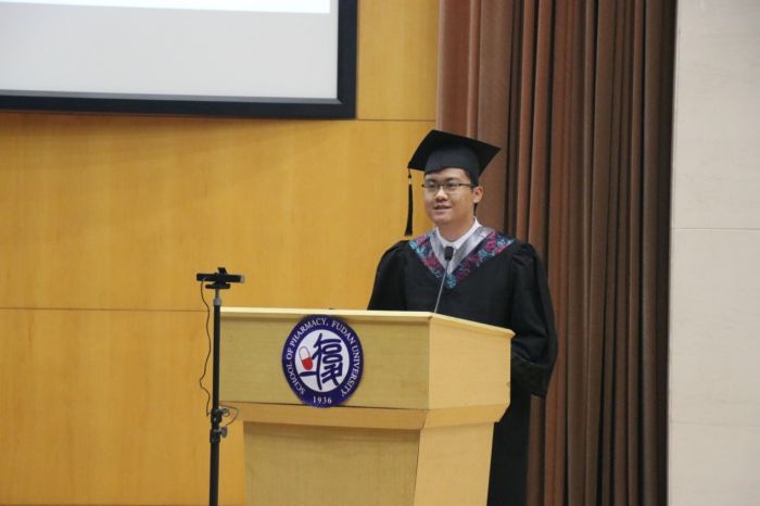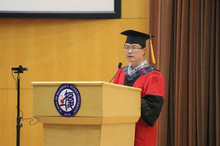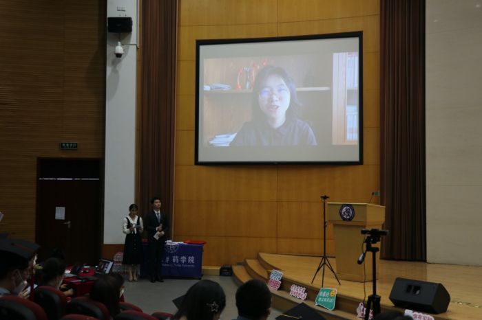 药剂学系教授陆伟跃代表h漫 全体教师为同学们寄语。陆老师以师长、学长的双重身份分享了自己的人生感悟,他殷切地嘱托毕业生进入社会后做到求同存异,合作共赢;在实践中锻炼思维能力,历练恒心信心。他结合自己丰富的人生经历,鼓励毕业生既要仰望星空又要脚踏实地;既要有天生我才必有用的信心也要有天道酬勤贵在坚持的恒心。