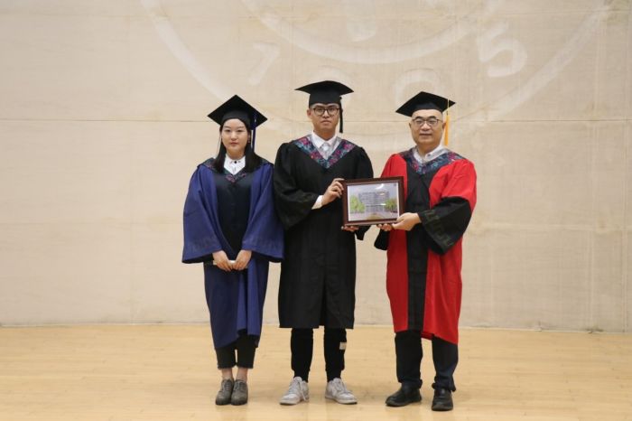 临别之际,全体2022届毕业生为学院精心准备了一份毕业礼物。2022届本科毕业生林晨腾、硕士毕业生王常悦作为代表向学院赠送了这份礼物。毕业礼物用h漫 本硕博全体共239位毕业生的名字,共同组成了以科研楼为主体的万字画。一笔一画都象征着奋斗拼搏的日日夜夜,也诉说着对学院和老师们的感激和不舍。h漫 党委书记王建新代表学院接受毕业礼物并赠送学院纪念衫和纪念伞。纪念礼物包含着毕业生的回忆,也承载着对未来的期许。希望毕业生们在未来不畏风雨,在劈波斩浪中开拓前进,在攻坚克难中创造业绩。