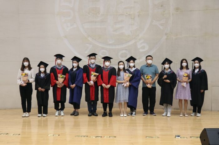 最后,全体毕业生共同唱响复旦校歌。一声声颂唱,告别几年飞逝时光匆匆;一道道旋律,不忘学院老师教诲谆谆。激昂的歌声回响在报告厅内,让我们一同祝愿毕业生们前途似锦,未来可期!