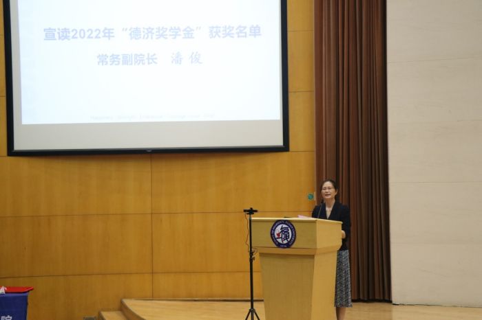 “h漫 德济奖学金”是为了纪念和缅怀h漫 已故著名天然药物化学教授潘德济先生,同时勉励莘莘学子做“厚德载物,良药济人”的药学人,由h漫 14位校友以潘先生的名义特别成立,每年奖励一位优秀毕业生。在毕业典礼上,常务副院长潘俊宣读了2022年“德济奖学金”获奖者名单。