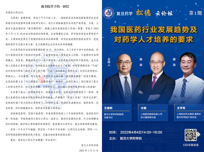 会后,各系/中心教学主任积极传达会议精神,扎实推进工作落实。学院进一步加强工作指导,制作防疫宣传海报,在学院公众号平台发布致全院学子的一封慰问信,面向全体师生开设“松德云论坛”,邀请业内杰出专家和优秀校友畅谈药学人生,为同学们指点迷津,让所有学生切实感受到来自学院的支持和关怀。学院教师们响应号召、齐心上阵,查漏补缺,通过微信、电话、邮件等方式关心学生的学业、生活和思想状况,尤其关注校外居住的研究生群体,保证特殊时期关心关爱不断线,并向学院第一时间反馈掌握的信息。学院根据老师们提供的信息,将问题分类汇总为科研迷茫、毕业焦虑、生活困难、不良情绪等几个方面,逐一采取针对性帮扶措施,并在4月7日全院大会时向老师们详细通报,介绍推广部分导师的经验做法。